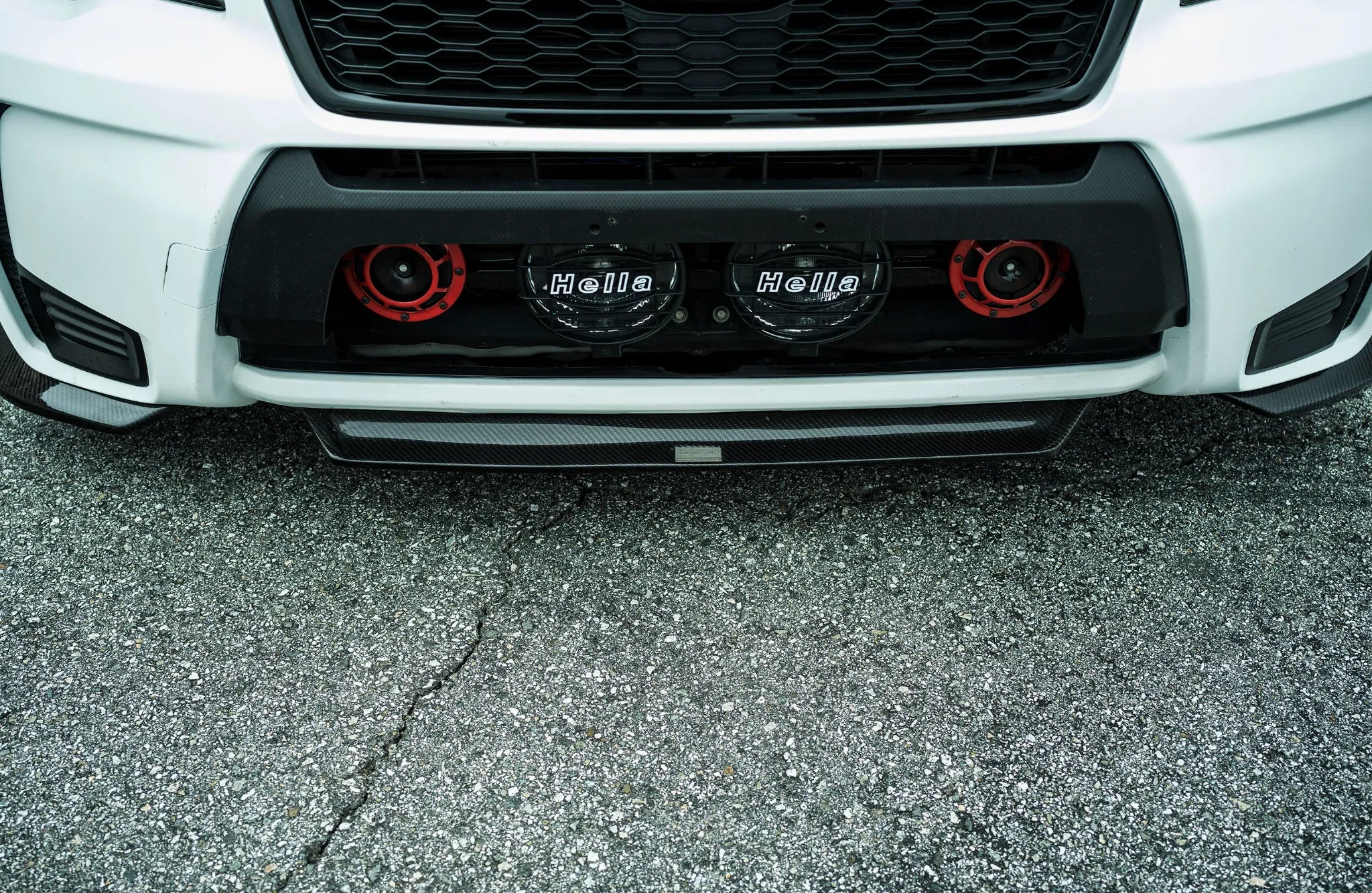 - Three-piece front lip design that aligns with the Forester’s body contours