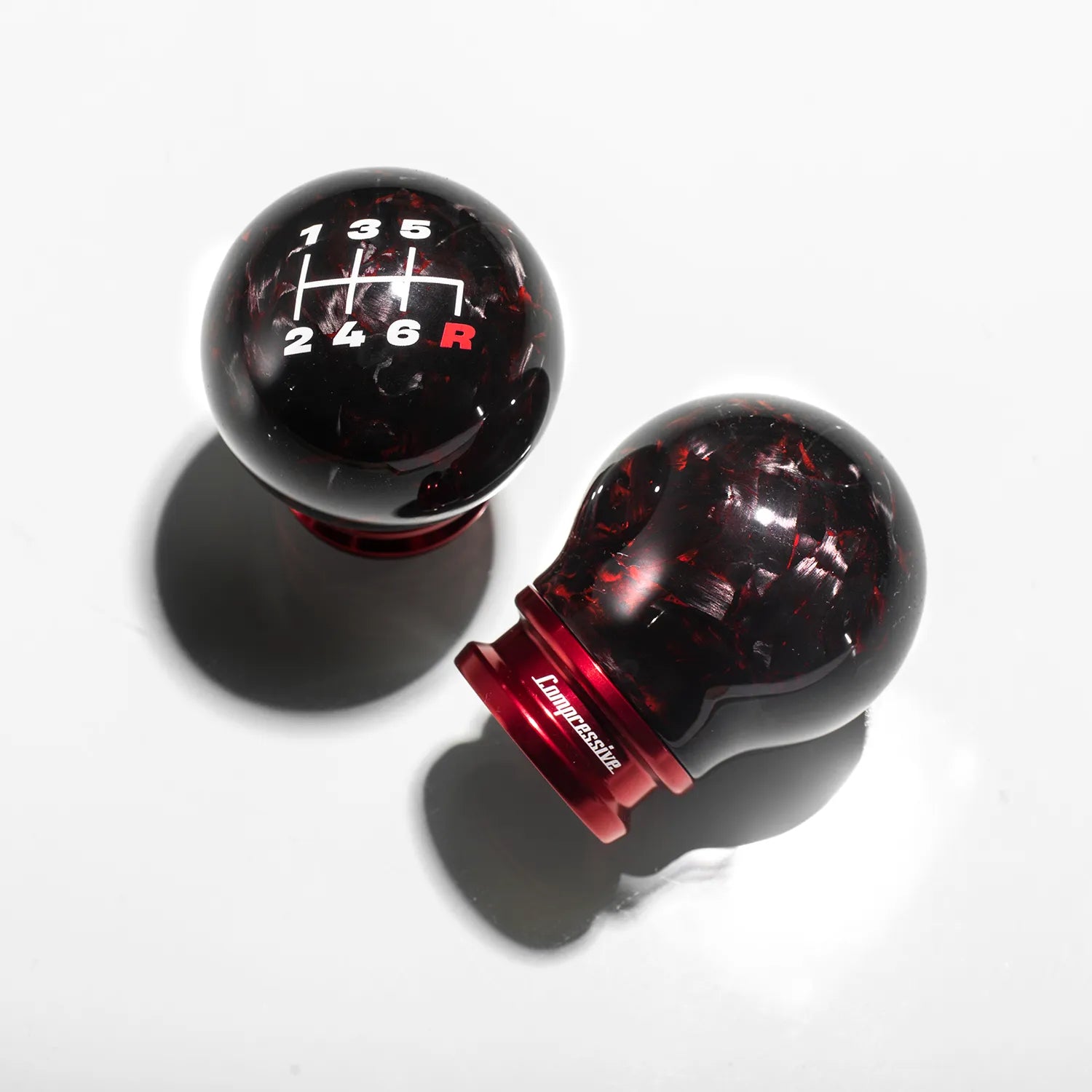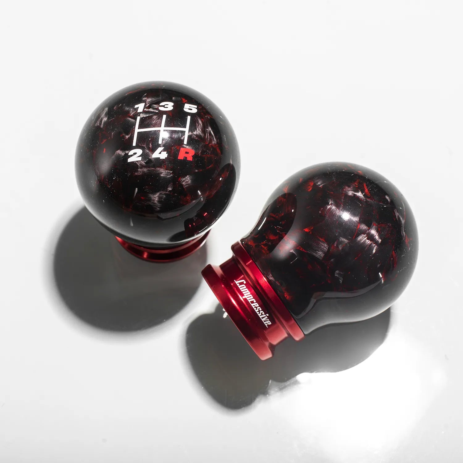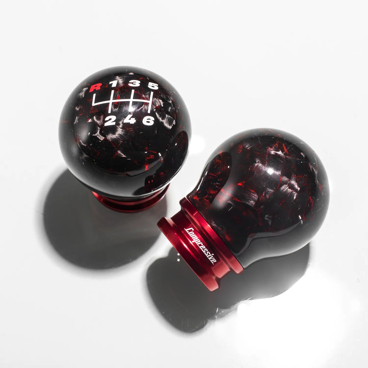 Every Red Forged Carbon Shift Knob is meticulously handcrafted in-house, showcasing Compressive Tuning’s dedication to quality and detail. The forged carbon manufacturing process creates a striking, random weave pattern that is both lightweight and exceptionally strong. This process results in a premium accessory that not only looks exceptional but also feels solid and balanced in your hand.