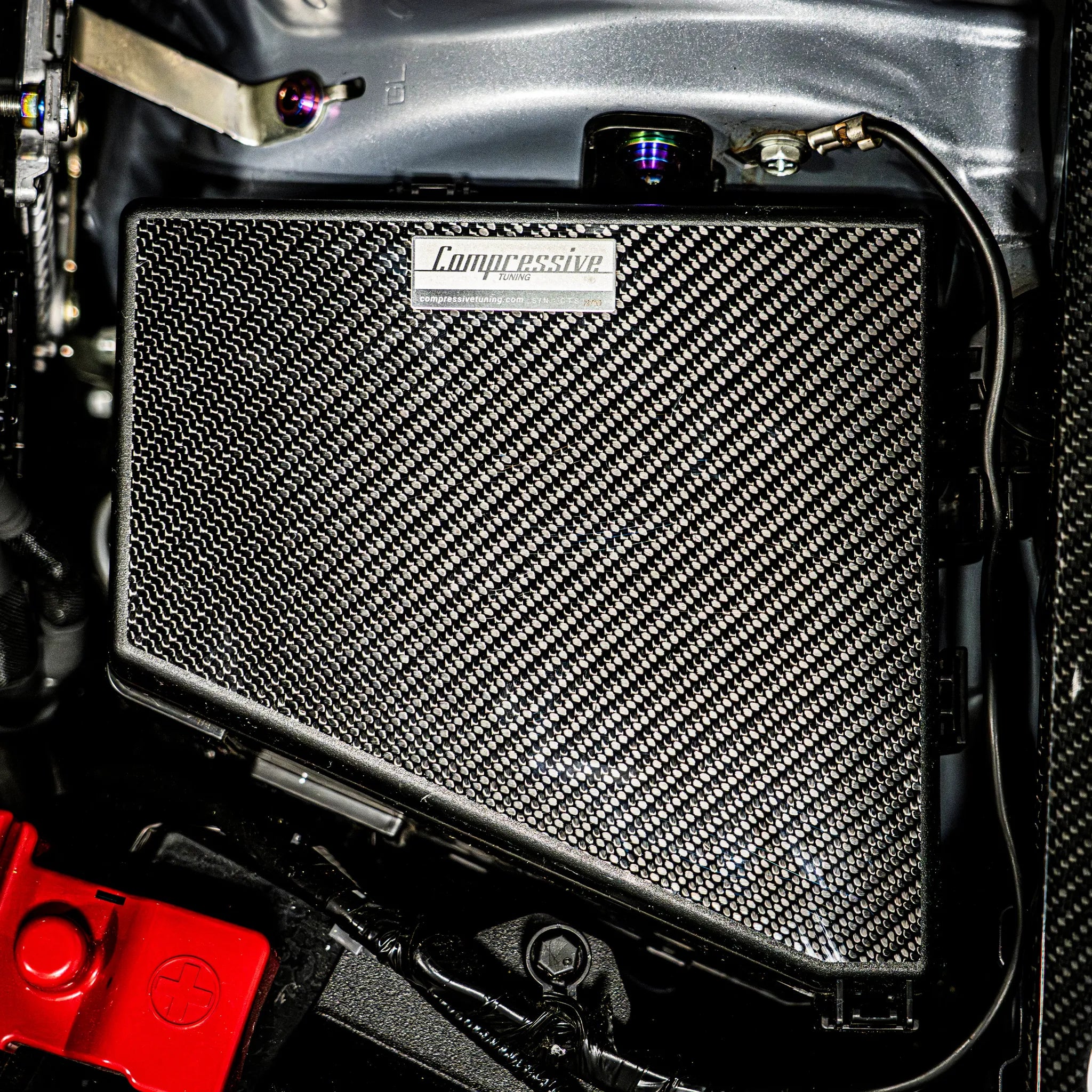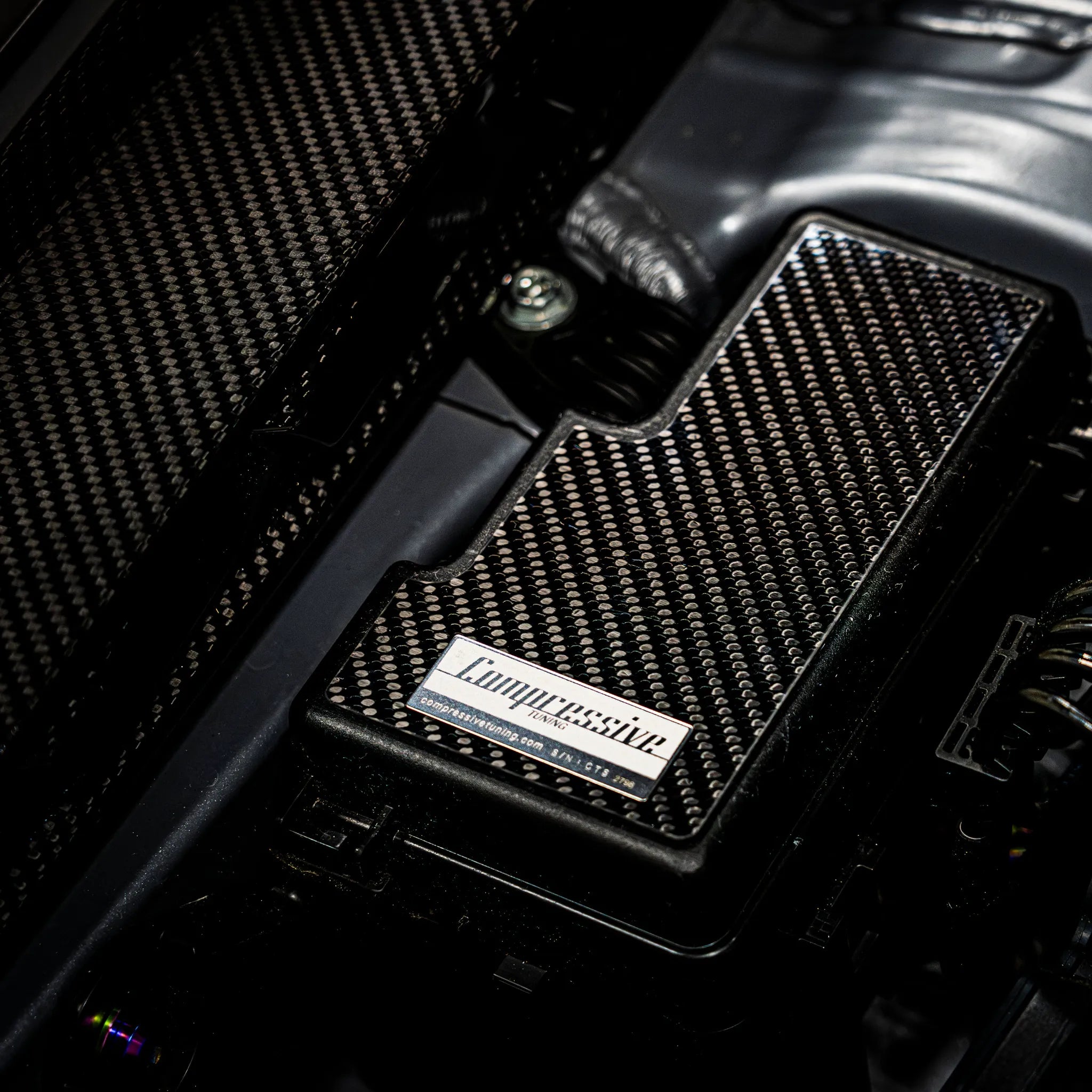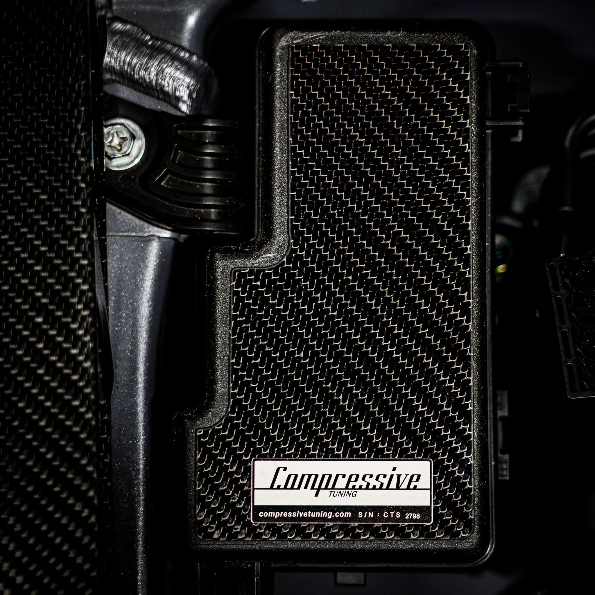 Each fuse box cover plate is meticulously handcrafted using Compressive Tuning’s proprietary dry carbon fiber process, delivering a distinctive, high-contrast weave that catches the eye. Manufactured entirely in-house, these covers reflect our commitment to premium quality and precision engineering, ensuring your WRX’s engine bay stands apart with tasteful sophistication.